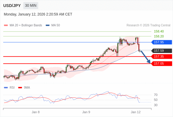 在 157.95 之下,看跌,目标价位为 157.35 ,然后为 157.05 。
