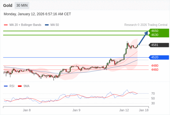 在 4520 之上,看涨,目标价位为 4630 ,然后为 4650 。