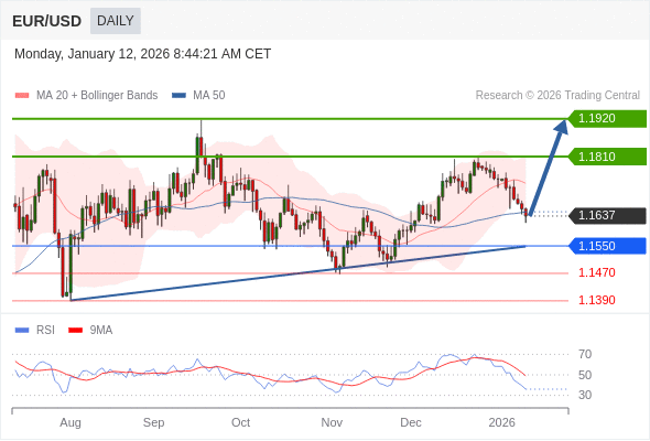在 1.1550 之上,看涨,目标价位为 1.1810 ,然后为 1.1920 。