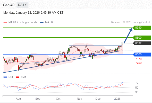 交易策略: 在 8000 之上,看涨,目标价位为 8500 ,然后为 8790 。