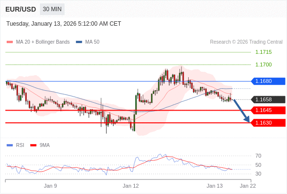 交易策略: 在 1.1680 之下,看跌,目标价位为 1.1645 ,然后为 1.1630 。