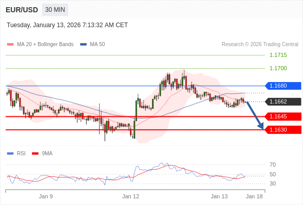 交易策略: 在 1.1680 之下,看跌,目标价位为 1.1645 ,然后为 1.1630 。