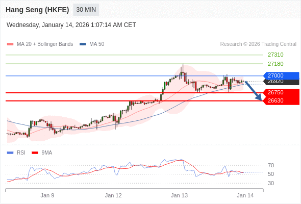 在 27000 之下,看跌,目标价位为 26750 ,然后为 26630 。