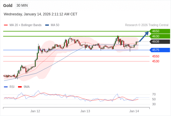 在 4575 之上,看涨,目标价位为 4630 ,然后为 4650 。