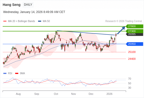 在 25950 之上,看涨,目标价位为 27300 ,然后为 27800 。