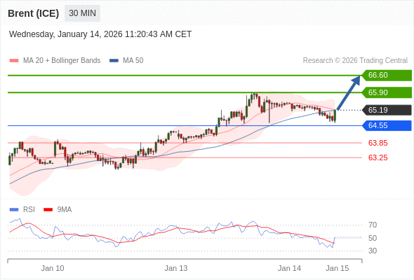 在 64.55 之上,看涨,目标价位为 65.90 ,然后为 66.60 。