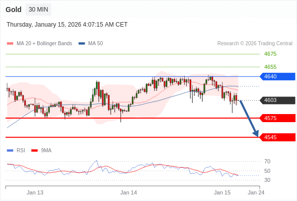 交易策略: 在 4640 之下,看跌,目标价位为 4575 ,然后为 4545 。