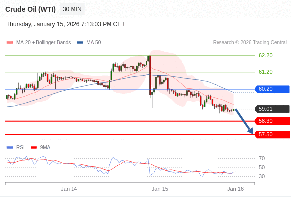 在 60.20 之下,看跌,目标价位为 58.30 ,然后为 57.50 。
