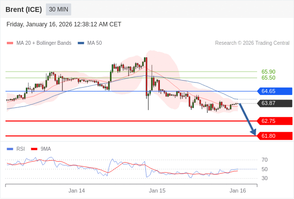 布伦特原油 (ICE) (H6) 当日内: 短期关键阻力位在64.65。