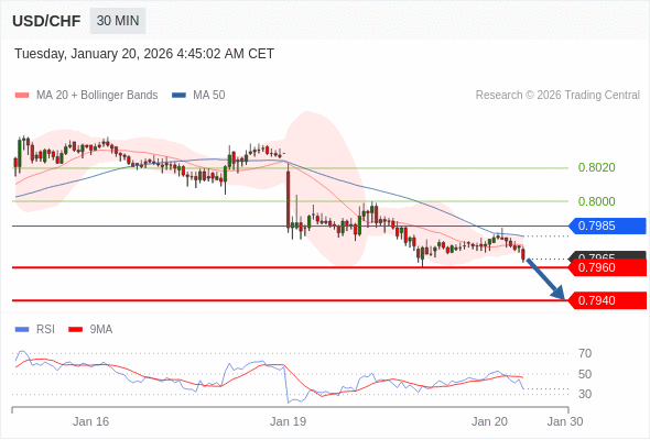 在 0.7985 之下,看跌,目标价位为 0.7960 ,然后为 0.7940 。