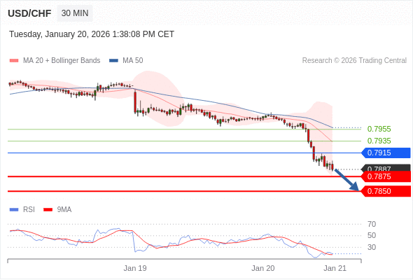 在 0.7915 之下,看跌,目标价位为 0.7875 ,然后为 0.7850 。