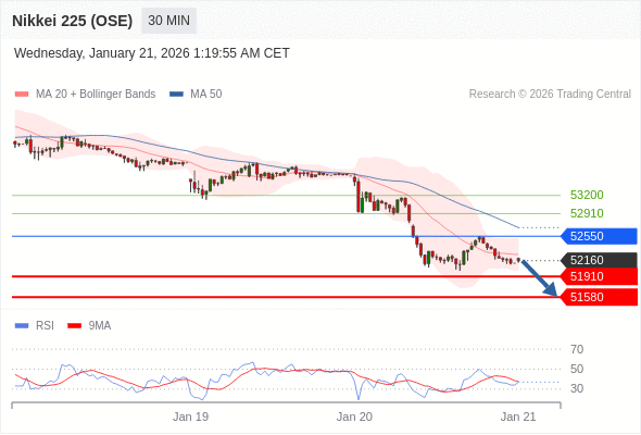 交易策略: 在 52550 之下,看跌,目标价位为 51910 ,然后为 51580 。