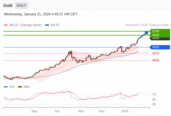 在 4500 之上,看涨,目标价位为 4950 ,然后为 5100 。