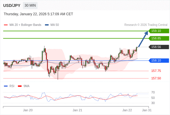 在 158.10 之上,看涨,目标价位为 158.85 ,然后为 159.10 。