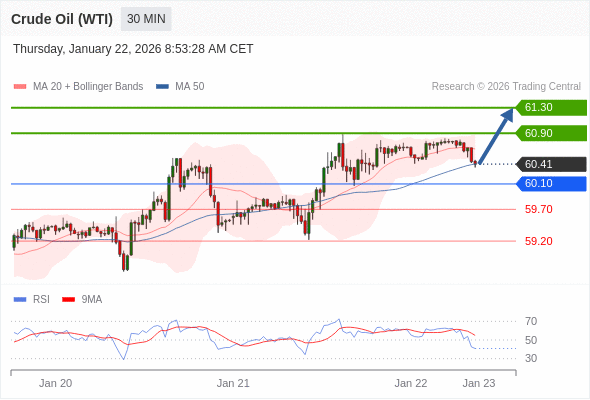 在 60.10 之上,看涨,目标价位为 60.90 ,然后为 61.30 。