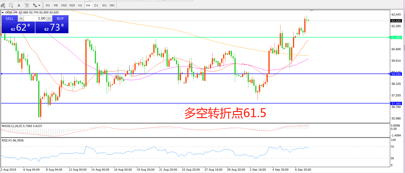 交易策略:在61.50之上看涨,目标64.50 66.70