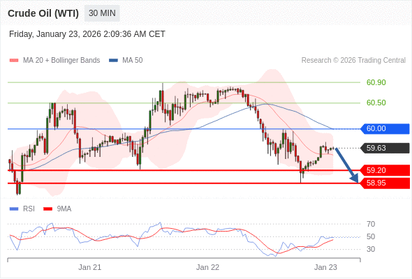 交易策略: 在 60.00 之下,看跌,目标价位为 59.20 ,然后为 58.95 。