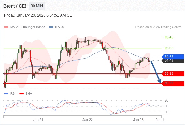 在 64.65 之下,看跌,目标价位为 63.95 ,然后为 63.55 。