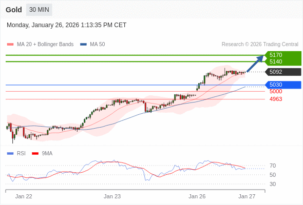 在 5030 之上,看涨,目标价位为 5140 ,然后为 5170 。