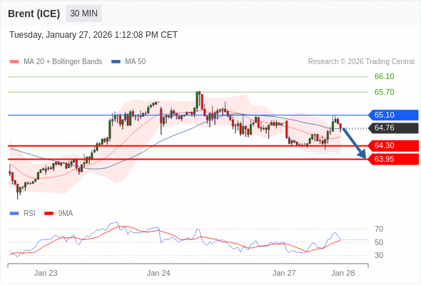 在 65.10 之下,看跌,目标价位为 64.30 ,然后为 63.95 。