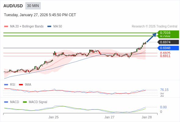 替代方案: 在0.6948以下,期待0.6925和0.6911。