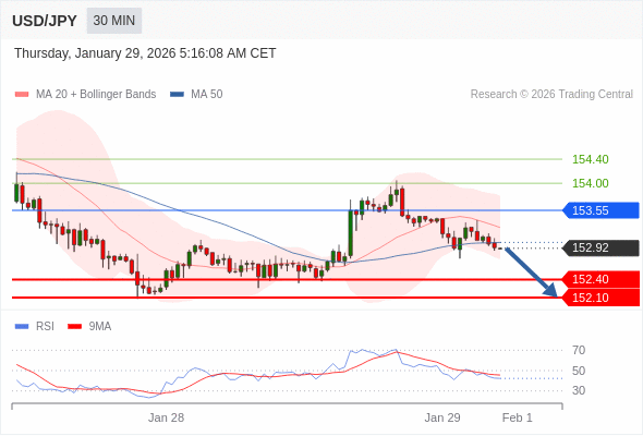 在 153.55 之下,看跌,目标价位为 152.40 ,然后为 152.10 。