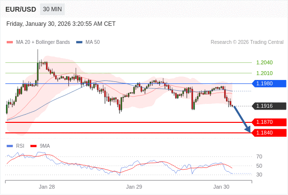交易策略: 在 1.1980 之下,看跌,目标价位为 1.1870 ,然后为 1.1840 。