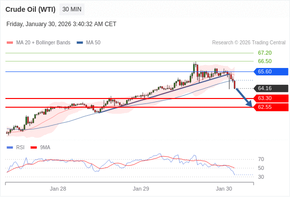 在 65.60 之下,看跌,目标价位为 63.30 ,然后为 62.55 。