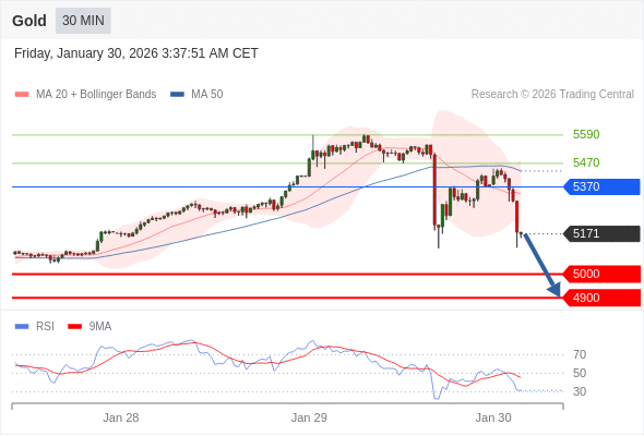 在 5370 之下,看跌,目标价位为 5000 ,然后为 4900 。