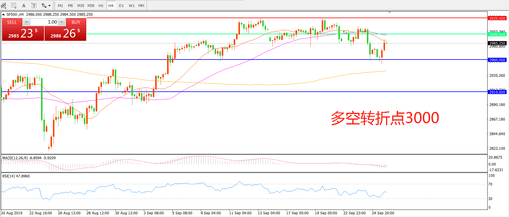 多空转折点:3000.00