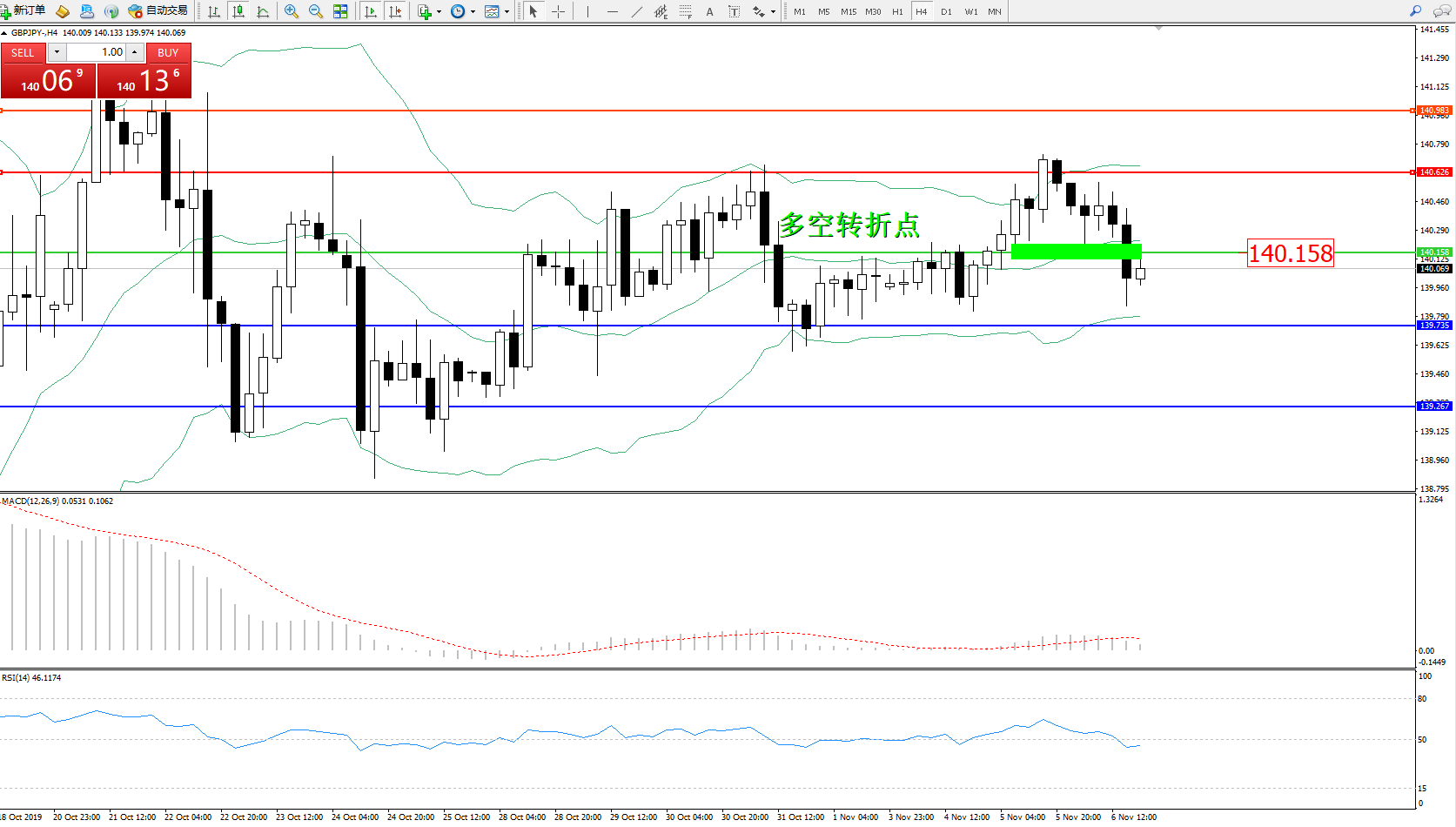 备选策略:140.158上方看涨,目标140.626140.983