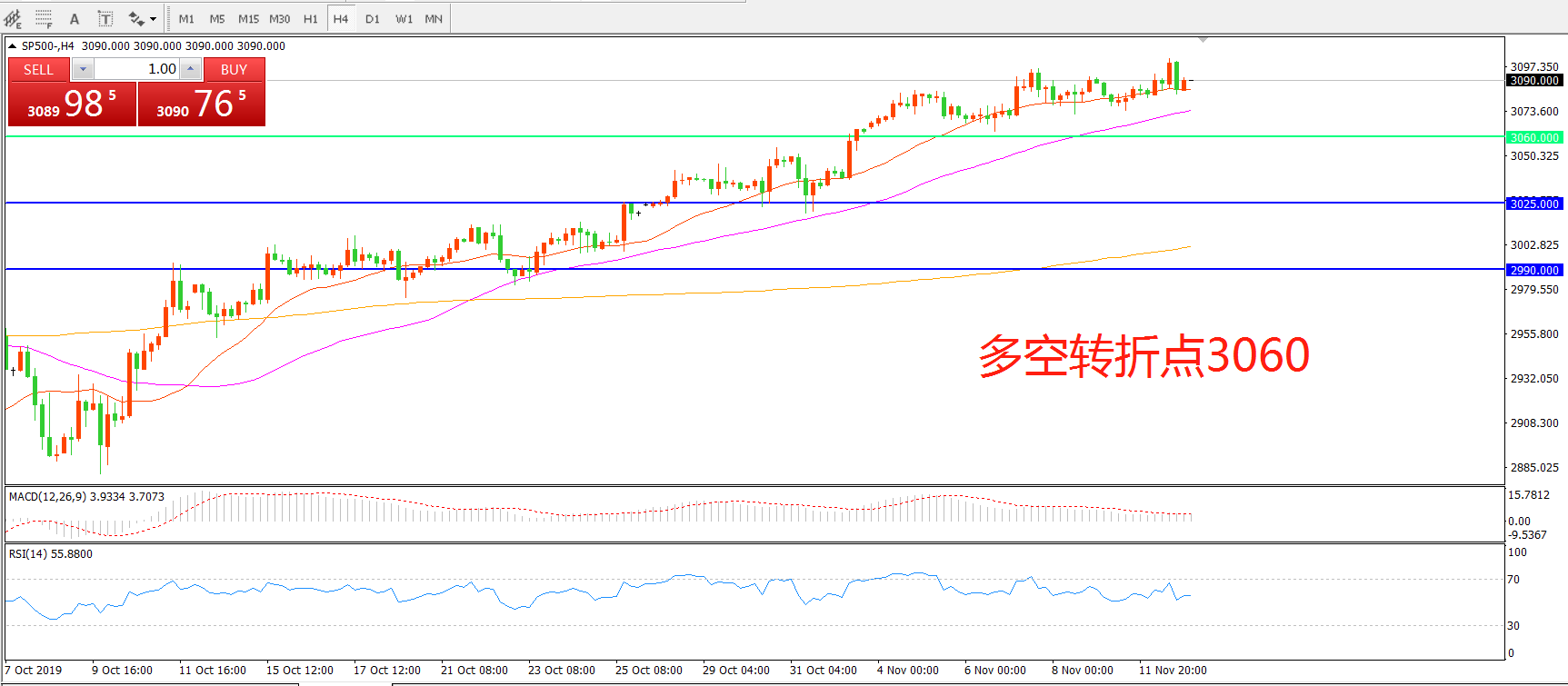 多空转折点:3060.00