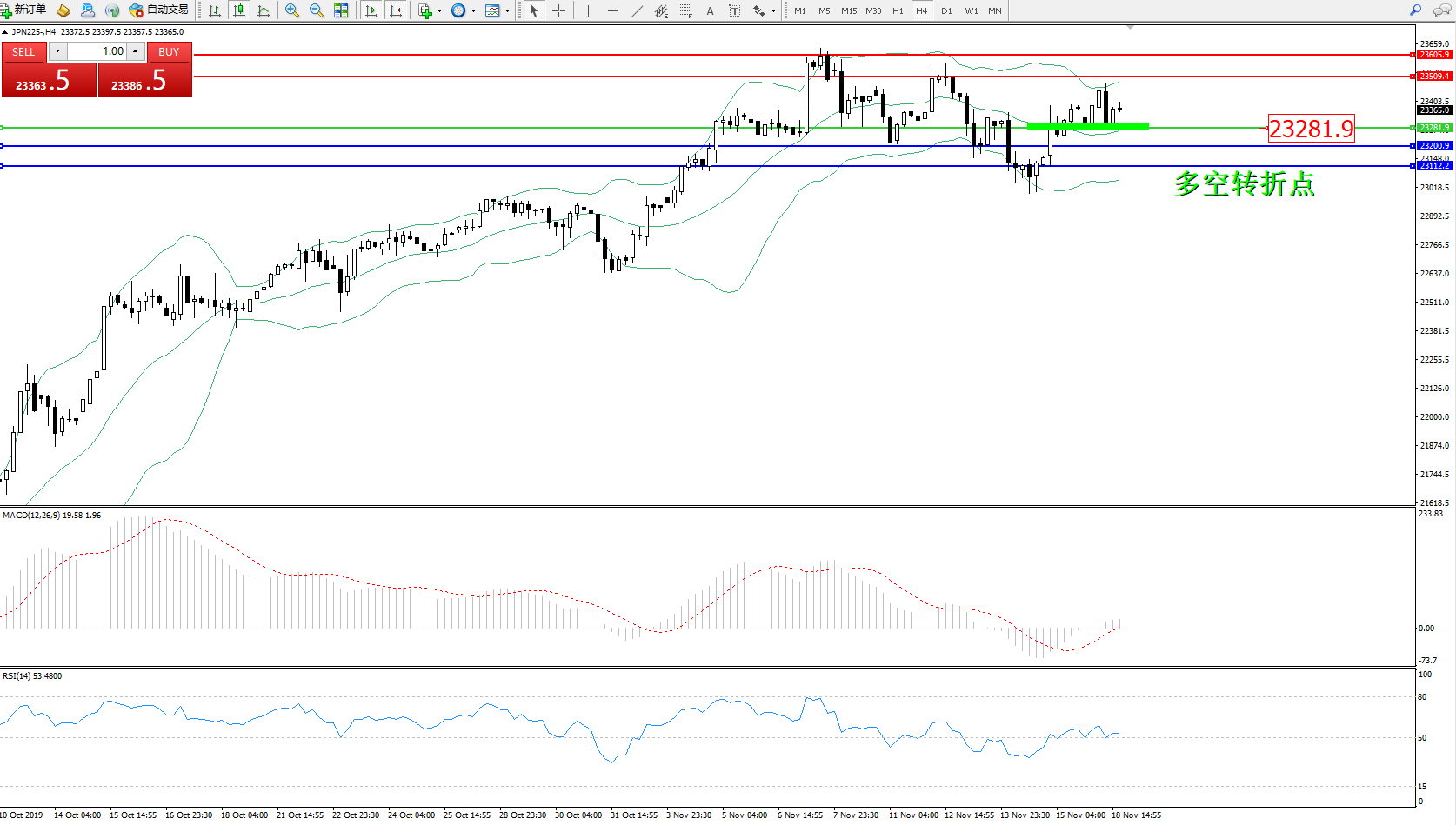 交易策略:23281上方看涨,目标23509、23605