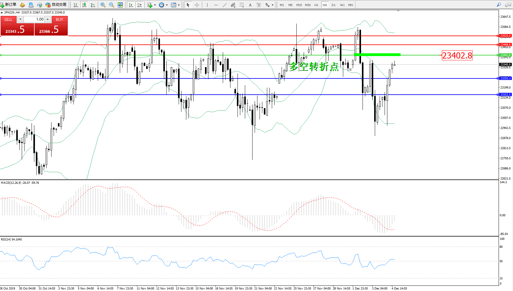 日经指数JPN225——4小时K线图: