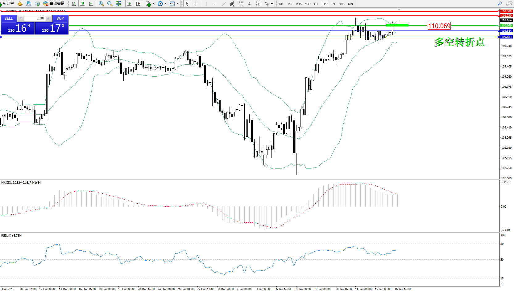 美元兑日元上涨0.24%至110.16,在盘中高点108.18附近;在中美一阶段贸易协定签约尘埃落定后,市场风险偏好情绪再度回暖,令避险买需再度退散,这令美元兑日元汇价在之前短暂歇脚之后重觅涨势。同时,美国零售销售数据整体也利多美元表现。签署的第一阶段贸易协议确认了2019年夏天以来贸易谈判的进展。协议的细节大致与预期相符,因而淡化了对市场的冲击。