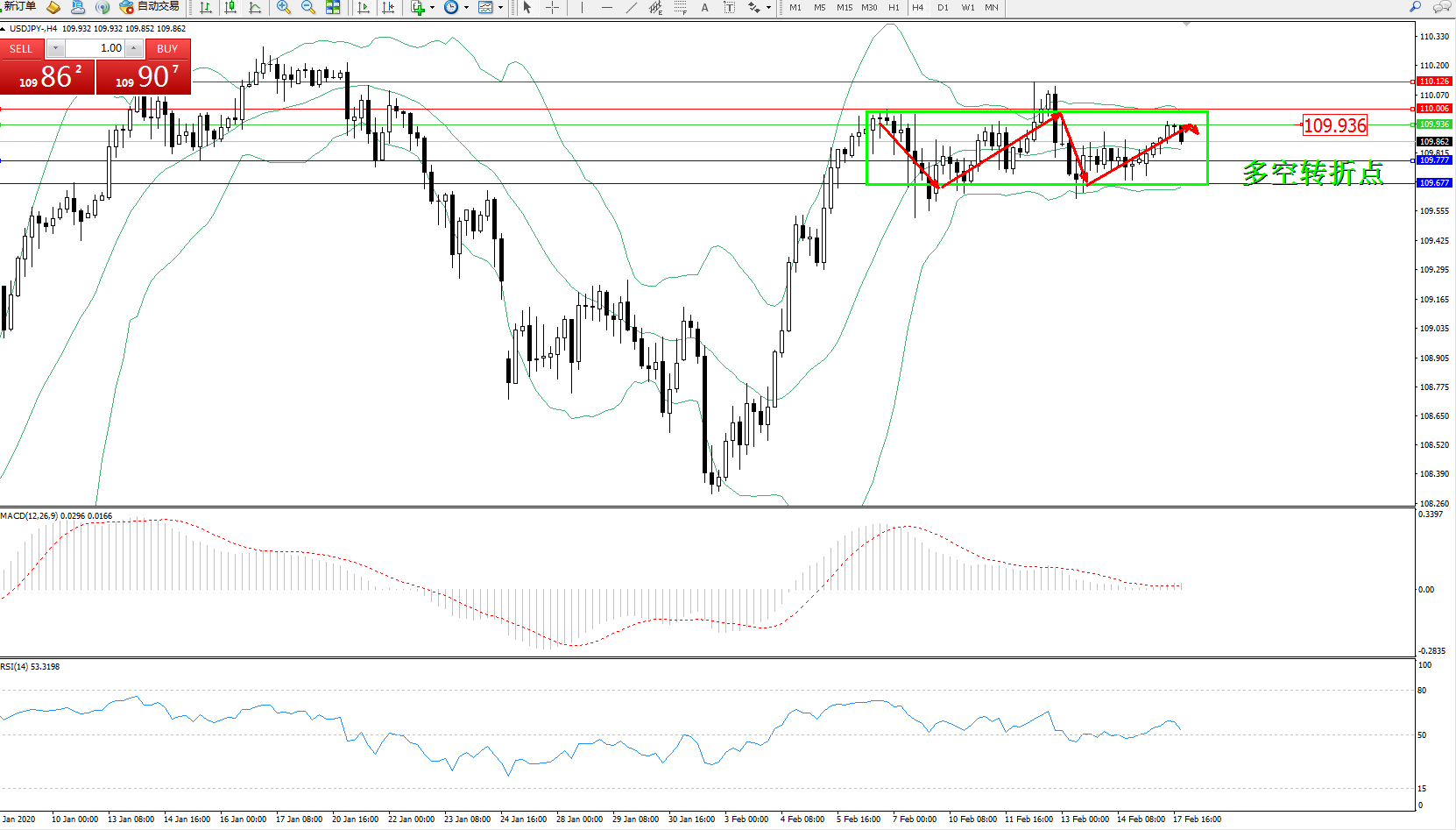 技术点评:高位持续矩形震荡走势持续中,布林带指标呈横盘整理,尚未走出通道内侧区域,MACD指标高位回撤至0轴线附近弱势徘徊中,RSI指标处于50均衡线上侧弱势整理平移中;