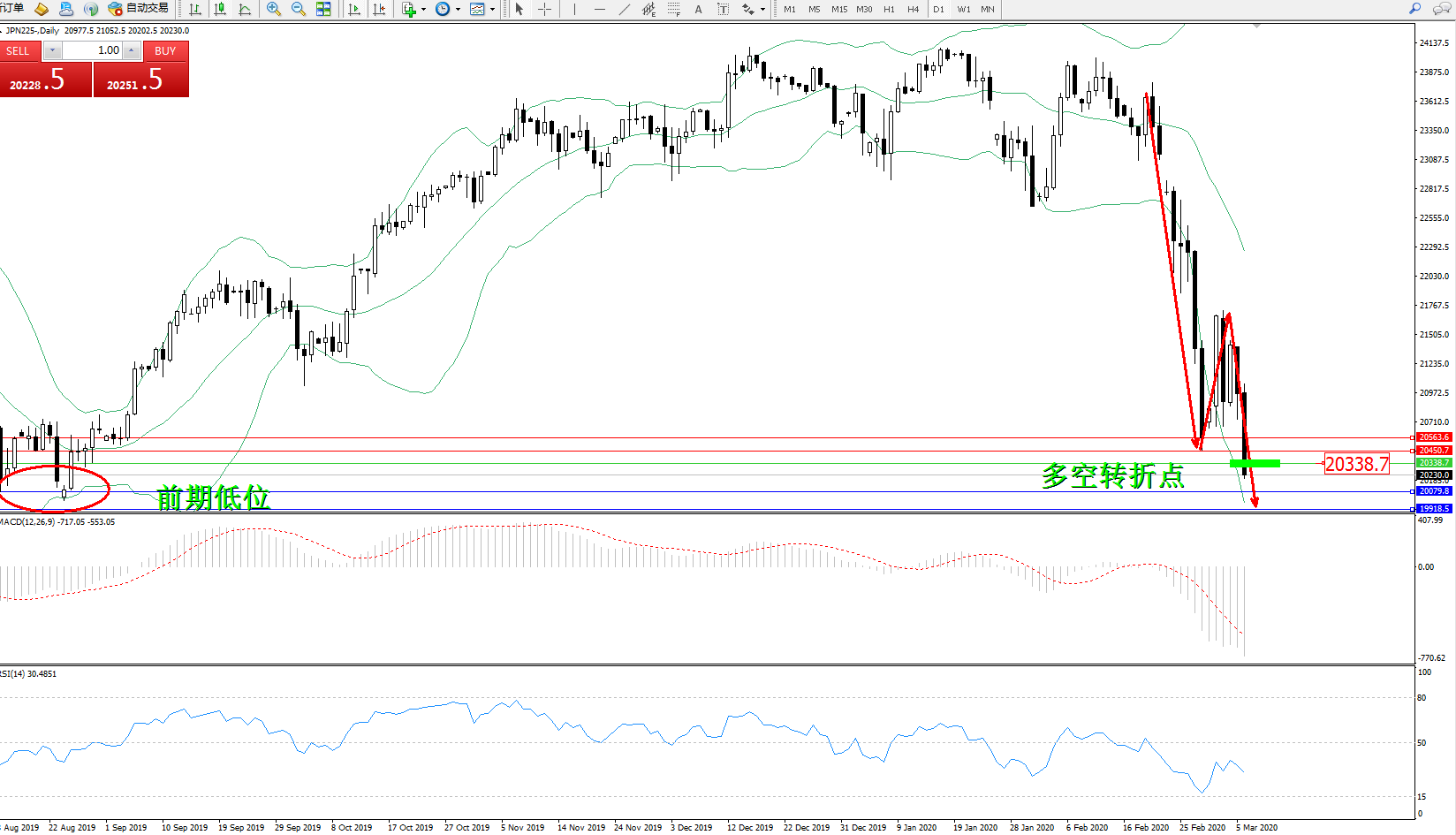 日经225指数3月6日(周五)收盘下跌597.12点,跌幅2.80%,报20732.00点。一项衡量日本经济前景的关键指标跌至全球金融危机以来最低水平,成为公共卫生事件正在推动日本经济陷入衰退的早期官方信号。内阁府表示,日本1月份领先指数降至90.3,为2009年11月以来最低。该指数综合了新职位发布数、股市走势和消费者信心等一系列指标,通常会表明实体经济几个月后的发展方向,政府会利用它来预测衰退。公共卫生事件之初是供应链和出口遇到了问题,但现在已经波及家庭,人们不再外出购物和用餐。在近期消费税上调本就降低了人们的购物意愿后,该风险事件对消费者构成了第二重打击。