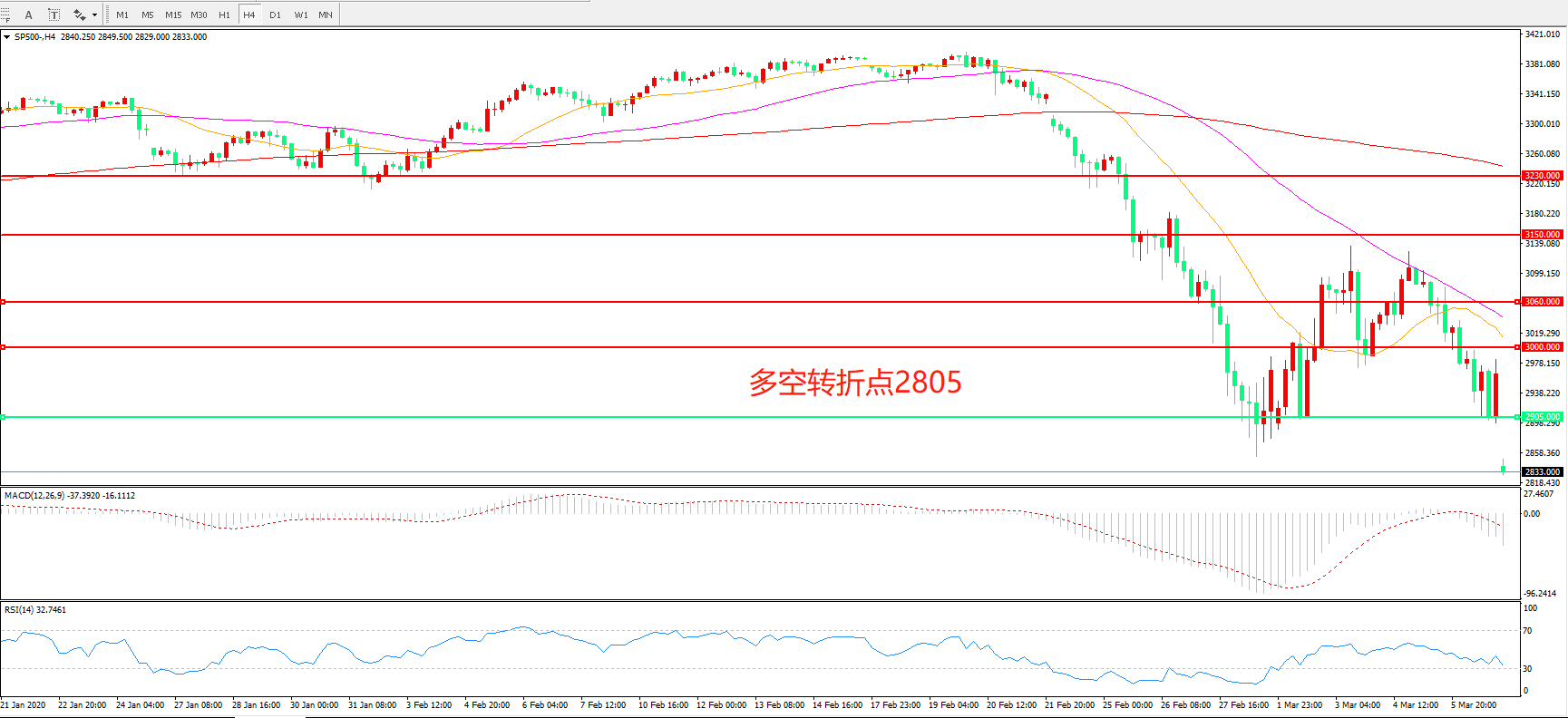 标普500 SP500   4小时图
