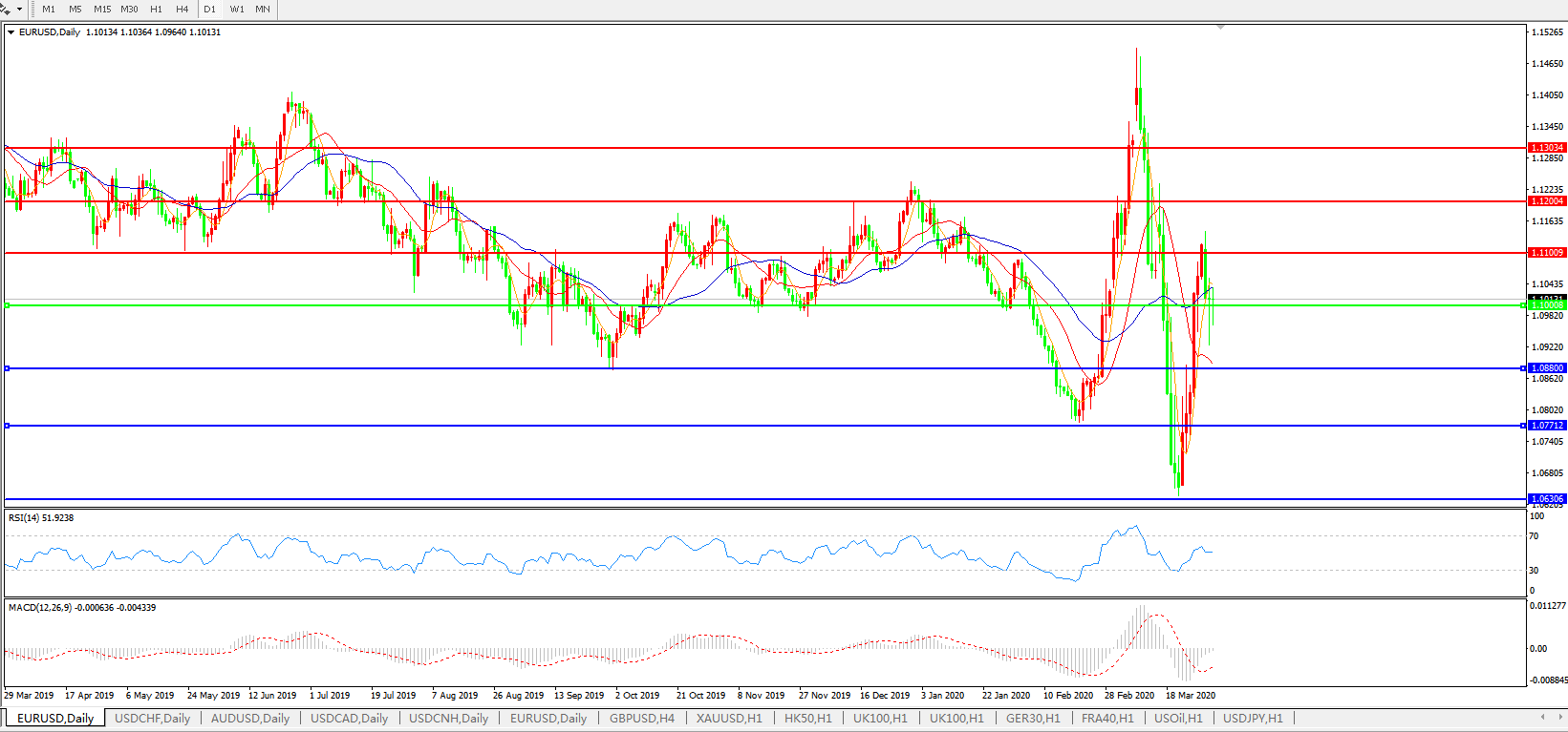 备选策略:1.1000下方看跌,目标1.0880、1.0770