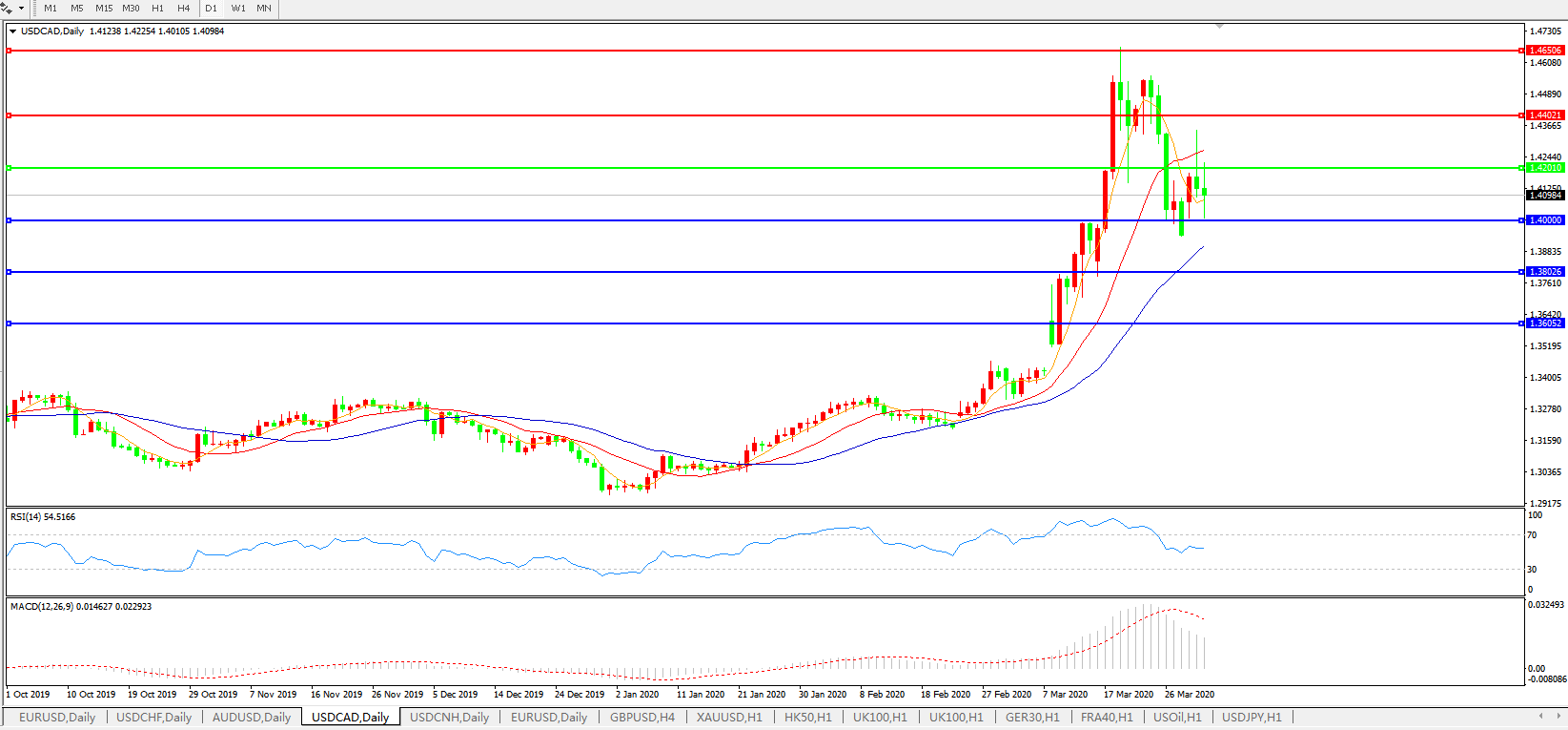 美元兑加元USDCAD    日线图: