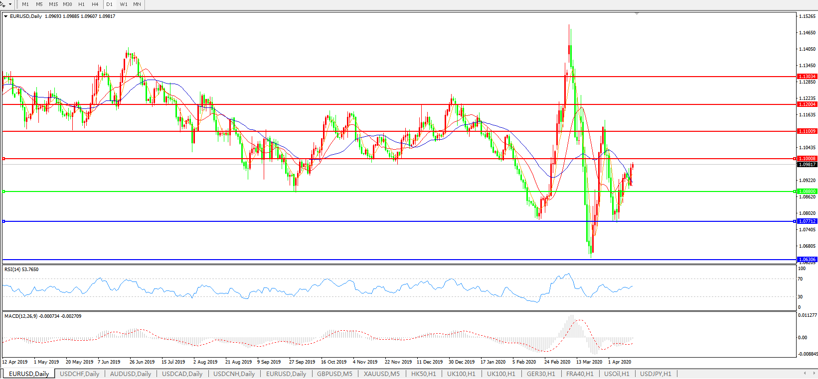 欧元兑美元EURUSD 日线图: