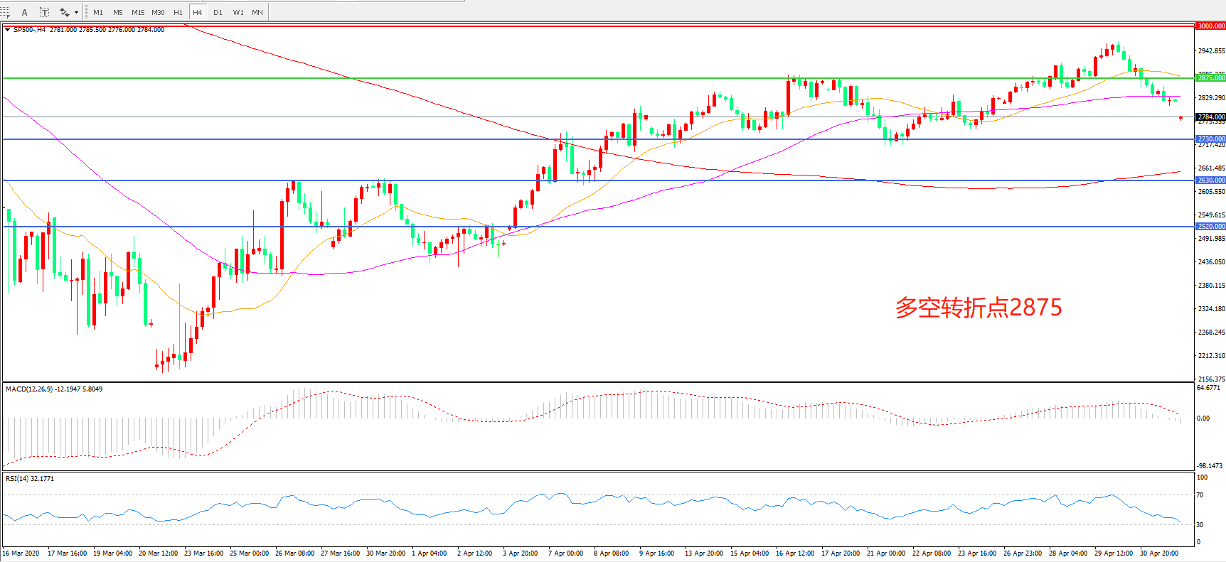 多空转折点:2875.00