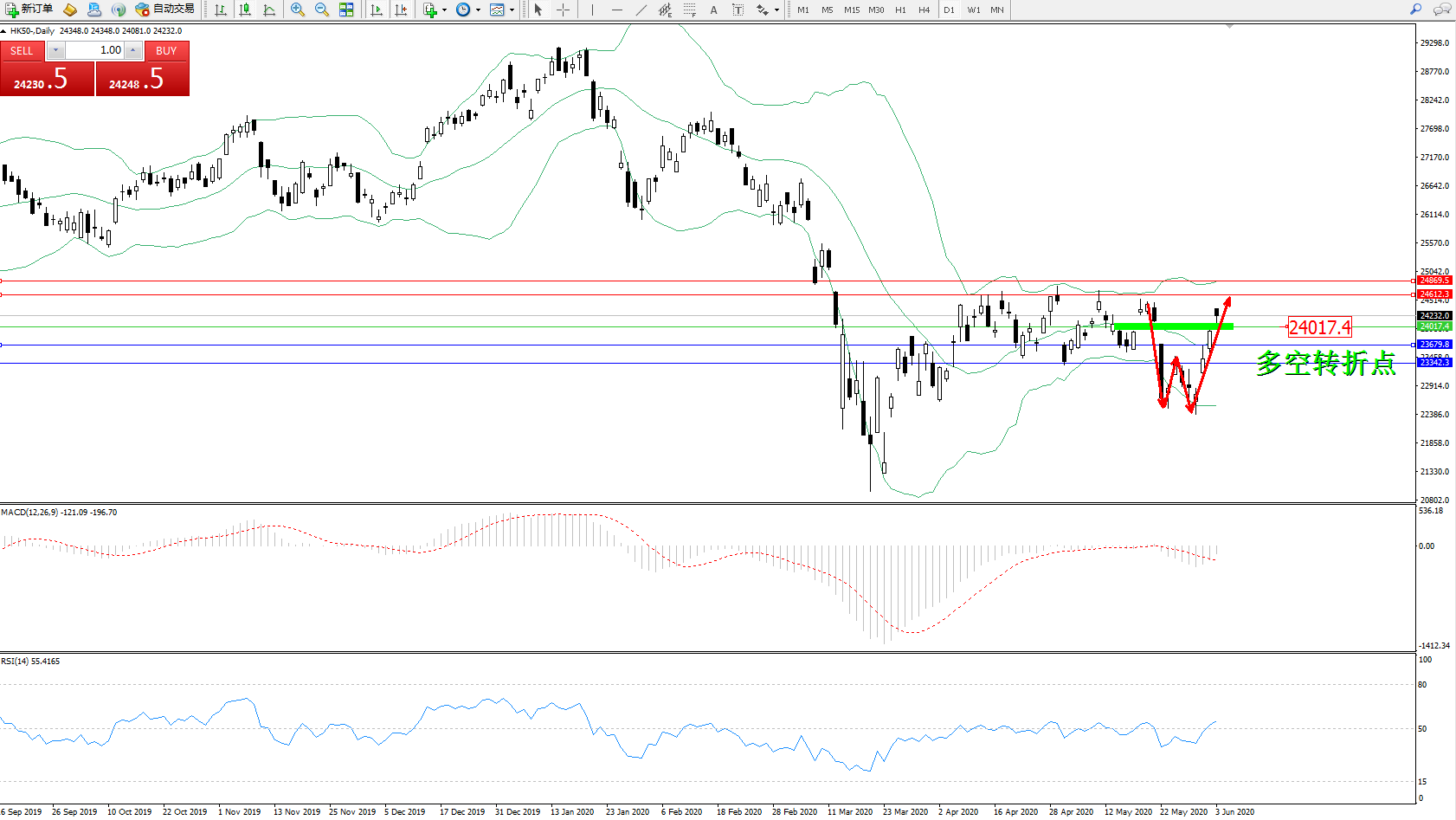 恒指HK50 ——日K线图显示: