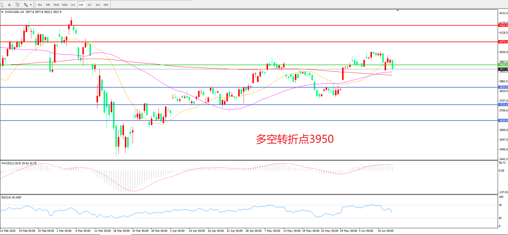 周一(6月15日),A股三大股指涨跌不一,沪深300 开盘后震荡拉升,一度翻红, 然而,风云突变。由于外盘突然砸盘,A股由涨转跌,沪深300大幅下挫,收报3927.9点。随着美联储宣布将进一步采取措施支持市场对抗新冠疫情后,美股V型上演反转,小涨收盘,外围风险的缓解对日内行情有一定的提振作用。