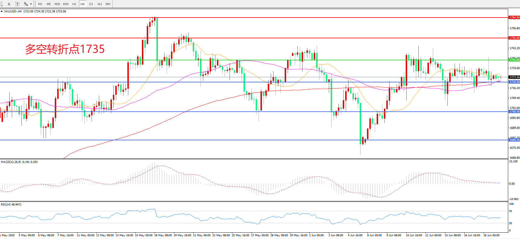 交易策略:在1735.00之下看跌,目标1720.00 1700.00