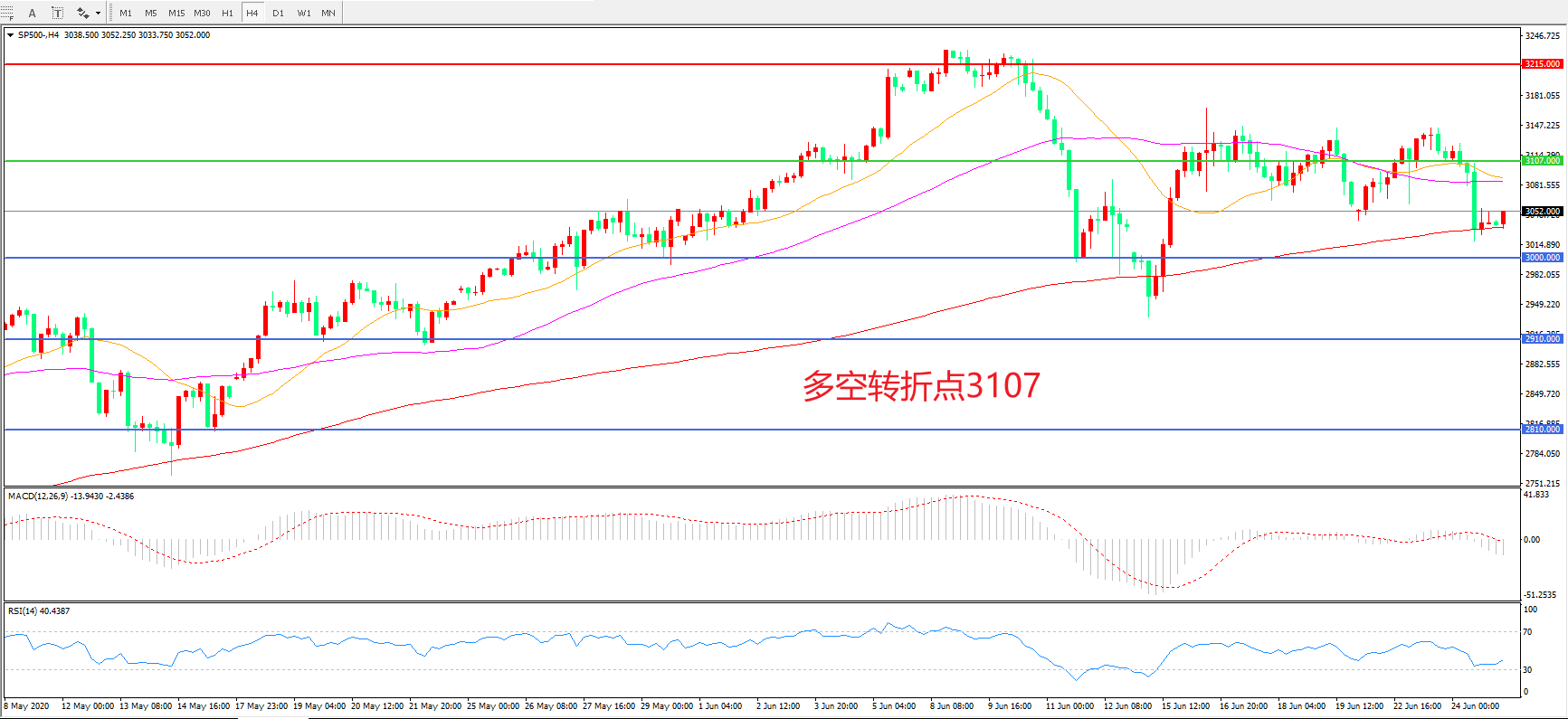 交易策略:在3107.00之下看跌,目标3000.00         2910.00