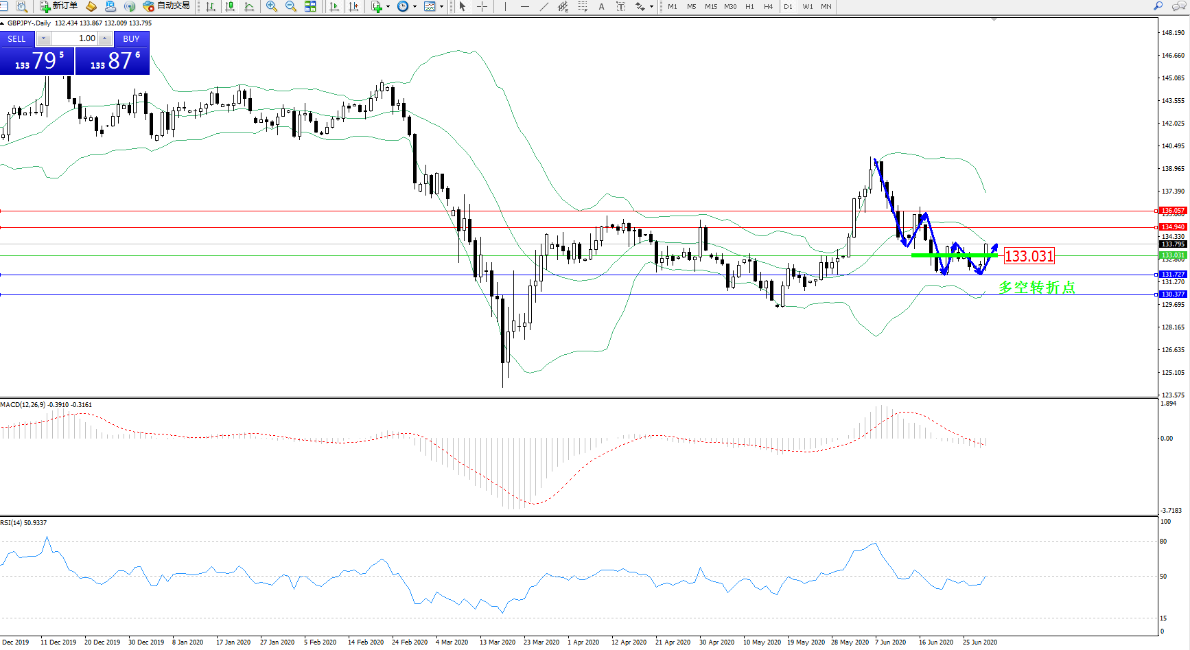 交易策略:133.031上方看涨,目标134.940、136.057