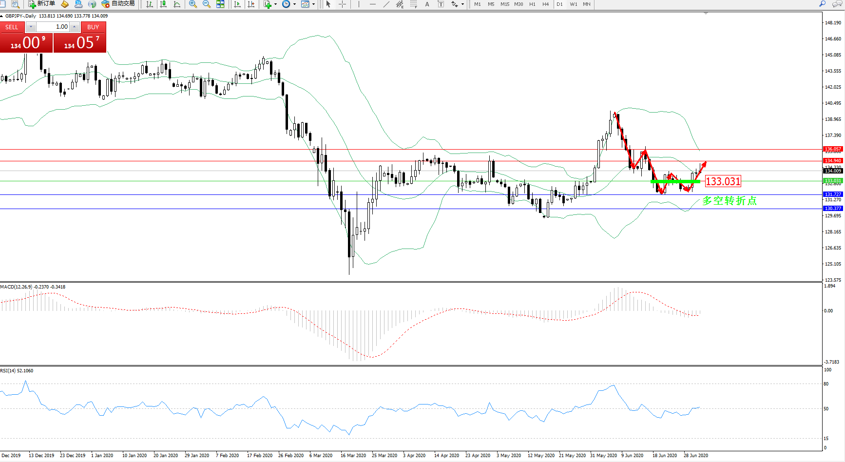 交易策略:133.031上方看涨,目标134.940、136.057