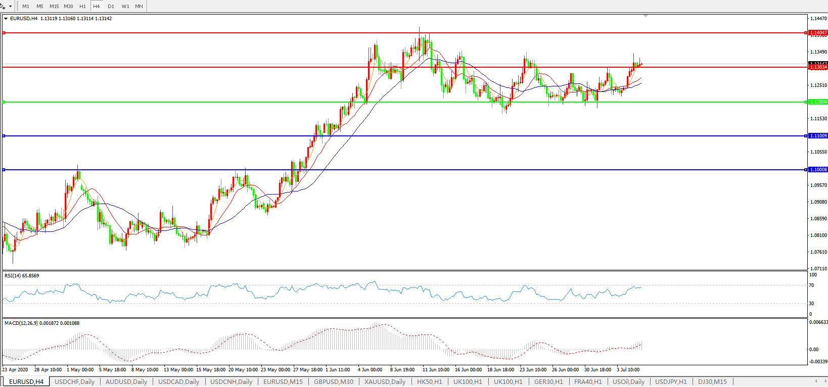 交易策略:1.1200上方看涨,目标1.1300、1.1400