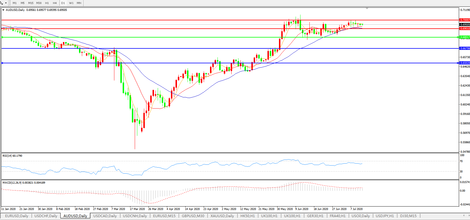 压制位:0.6900 0.7000